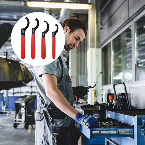 Rundago 4-Teiliges Hakenschlüssel, Gewinde SchlüSsel Satz Verstellbare Hakenschlüssel mit Rutschfestem Griff, Gewindefahrwerk Schraubenschlüssel Stahlschlüssel, Stoßdämpfer Werkzeug