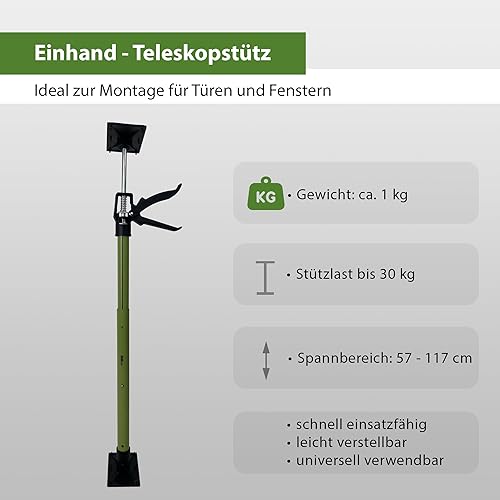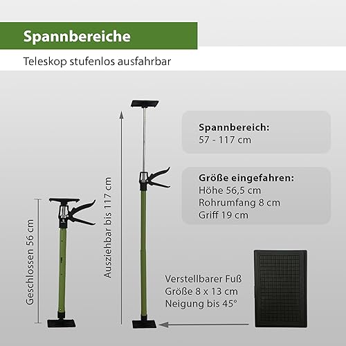 3x Zargenspanner stufenlos 57-117 cm Druckplatte neigbar bis 45° Teleskopstütze Einhandstütze Montagestütze für Türrahmen, je 30 Kg Tragkraft Winkelspanner, Türzargen