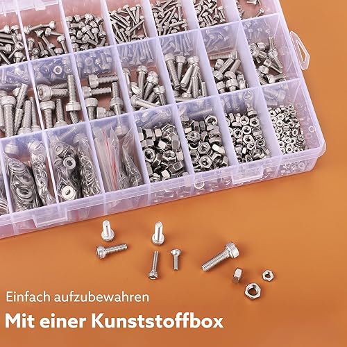 1407 Stück Schrauben Set Edelstahl, M2/M3/M4/M5 Maschinenschrauben Zylinderkopfschrauben Gewindeschrauben Set Sechskantschrauben Set für Elektronikprodukte Autoreparatur
