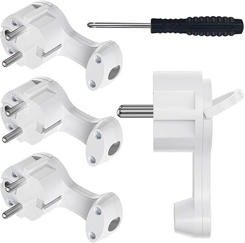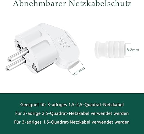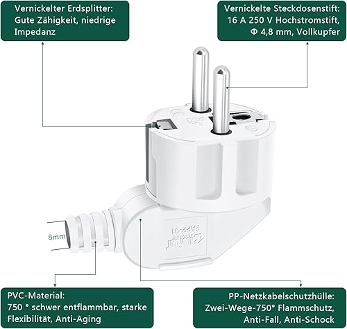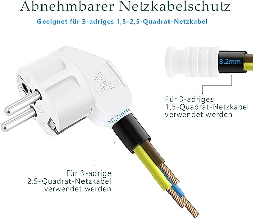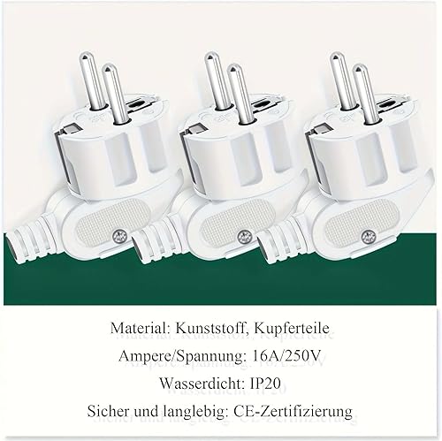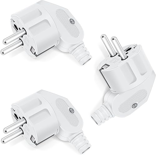 4 Stücke Schuko Stecker, YEAPOW Schutzkontaktstecker,Schuko Stecker wasserdicht,16A, Schutzkontakt Winkelstecker mit Klappgriff, Eurostecker für 8-10mm Kabel extraflach mit Bügel, Weiß