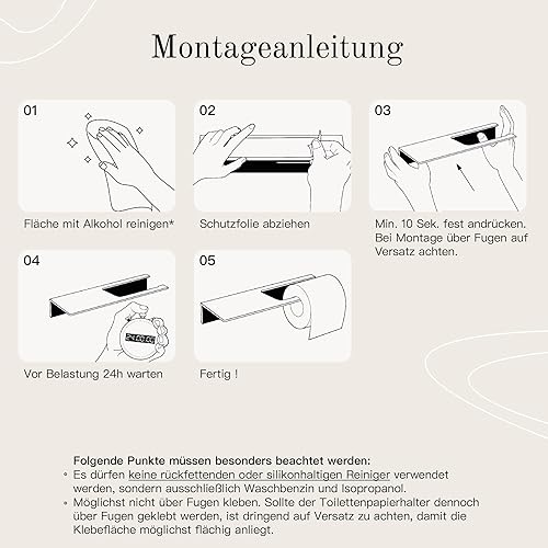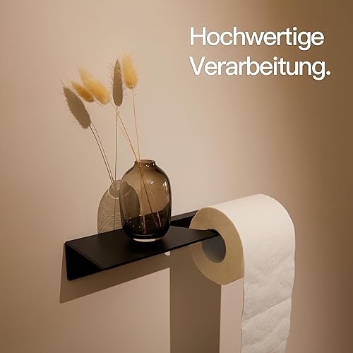 Designfabrik Hamburg Toilettenpapierhalter ohne Bohren | Klopapierhalter zum Kleben | Klorollenhalter Bad | WC Rollenhalter selbstklebend | Toilettenpapierhalter Schwarz | Modernes Design