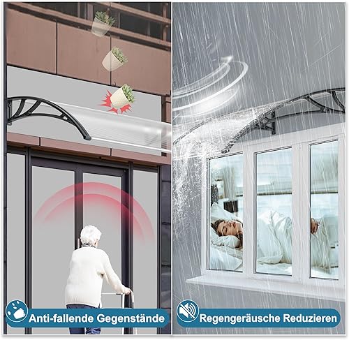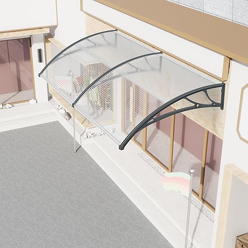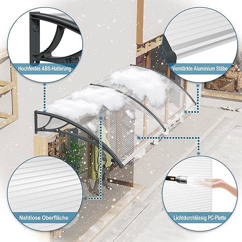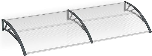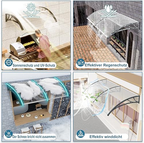 Aufun Vordach für Haustür Haustürvordach Pultvordach aus 5 mm Dicke Transparentes Polycarbonat, PP Halterung, Türdach für draußen Pultbogenvordach Überdachung (150 x 100 cm, Graue Klammer)