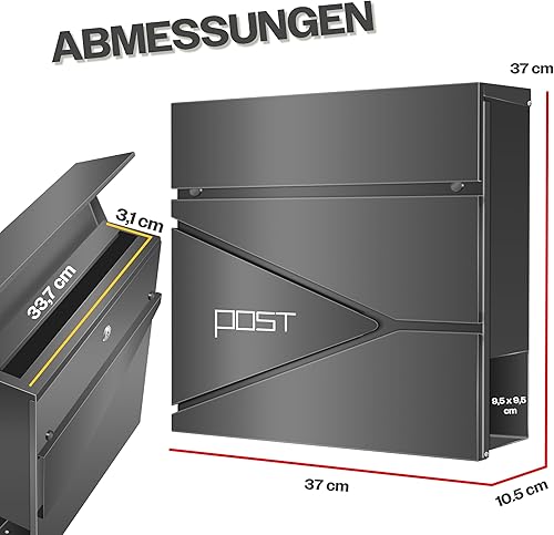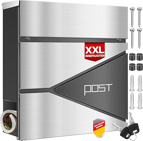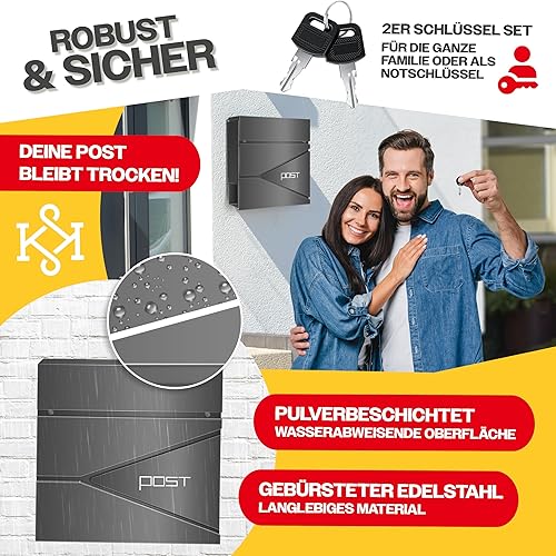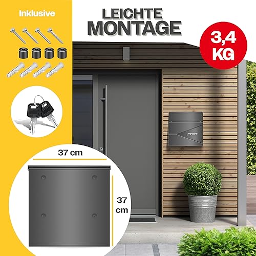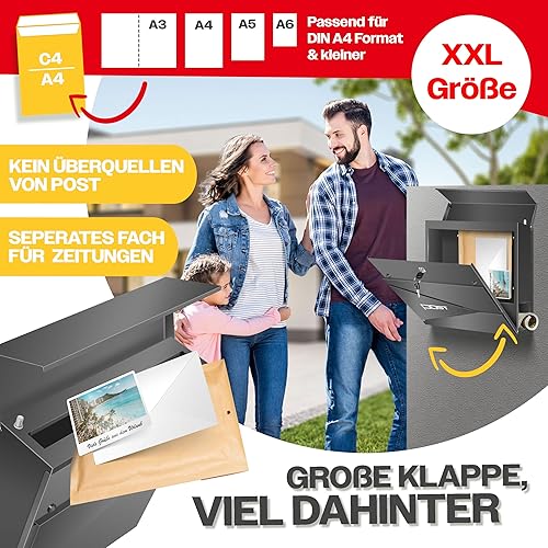 KESSER® Briefkasten mit Zeitungsfach Wandmontage Wandbriefkasten Edelstahl, 2X Schlüssel abschließbar, Moderner Postkasten Zeitungsrolle, inkl. Montagematerial, Softclose-Deckel, Silber/Anthrazit