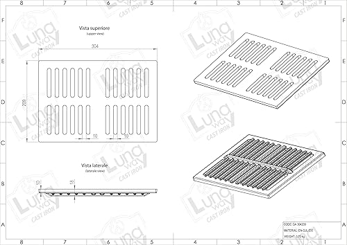 Lunaway - Gussrost für Ascheauffang | Dicke 1 cm | Mittendicke 1,8 cm (34 x 24,8 cm)
