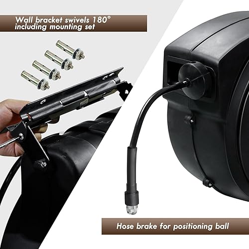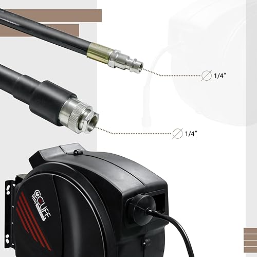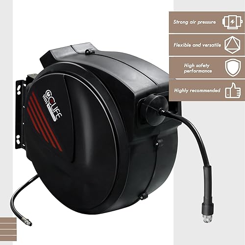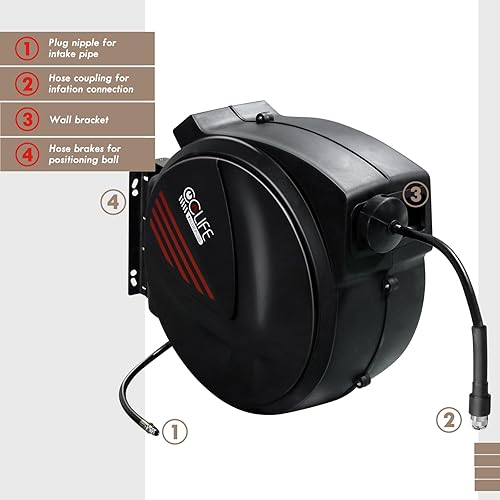 CCLIFE Automatik Schlauchtrommel 29m+1m mit Druckluftpistole, 15 Bar max, 1/4' Schnellkupplung, Innendurchmesser 8mm Stärke Wandung 2mm Druckluftschlauchtrommel Wandhalterung