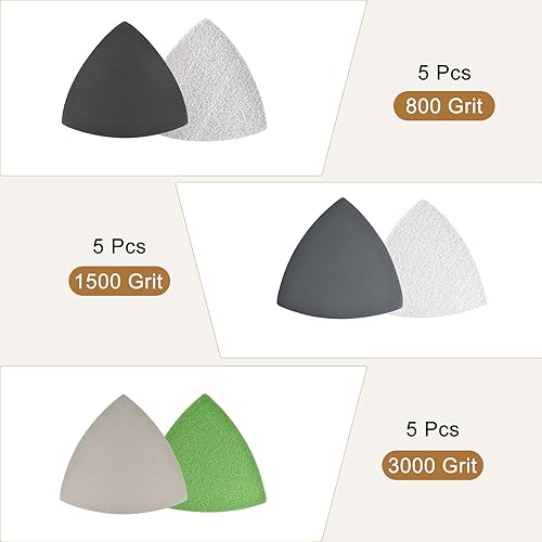 sourcing map 15 Stück Dreieck Detailschleifer Schleifpapier Satz 800/1500/3000 Körnung 3-1/2 Zoll Klett Siliziumkarbid Schleifpads