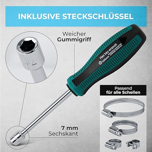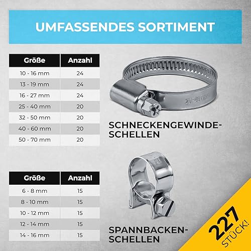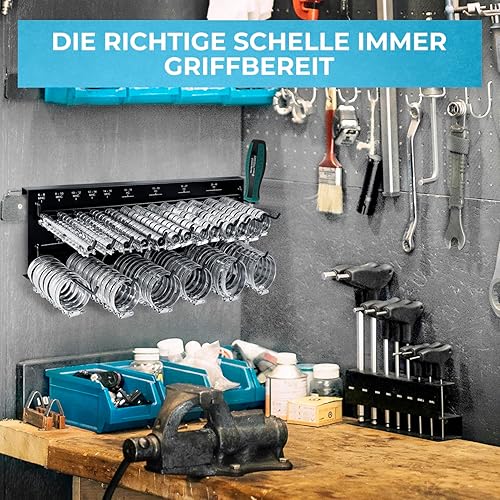 GRAFT Schlauchschellen Wandhalter Set | 227 Stück | Inklusive Halterung und Schraubendreher | Rohrschellen Set | Einstellbare Schlauchklemmen | Schlauchschelle Sortiment | Organizer Rack