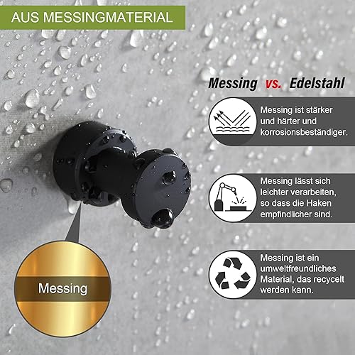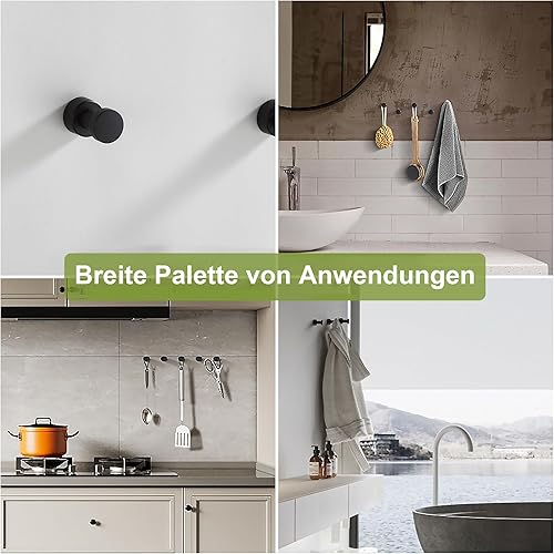 BVL Matte Schwarz Handtuchhaken, 5 Stück Rostfreies Metall Wandhaken, Self Adhesive or Wall Mountable Kleiderhaken für Bad Küche