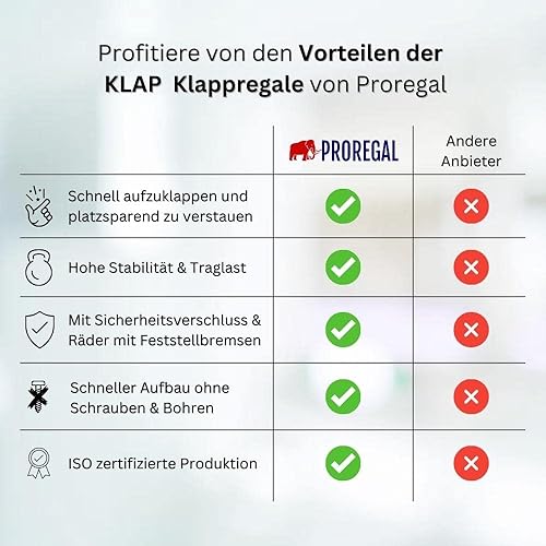 PROREGAL KLAP klappbares Regal mit Rollen | 5 Böden/Fächer | Weiß | Belastbarkeit 250kg | HxBxT 167x72x34cm | Lagerregal Metallregal Klappregal