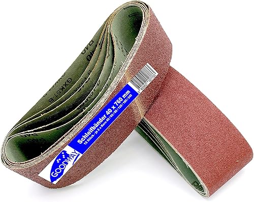 Gewebe-Schleifbänder │ 12 Stück │ 40 x 760 mm │ je 2 x Korn 40/60/80/120/180/240 │ kompatibel mit Bandfeilen │ Schleifpapier │ Schleifband-Mixpack