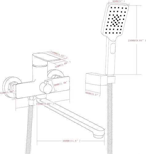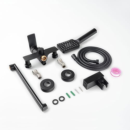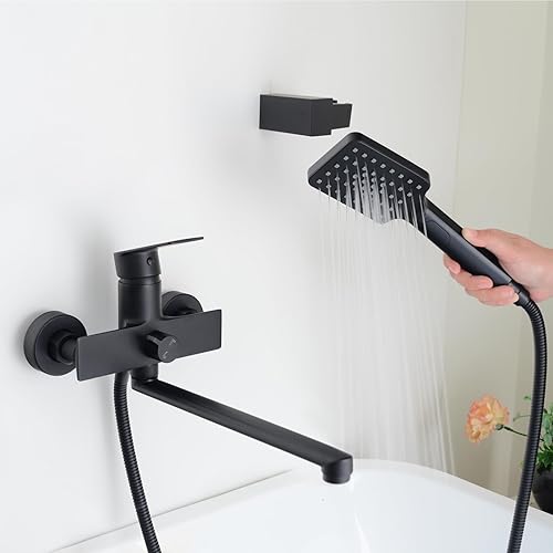PHASAT Badewannenarmatur mit Handbrause Einhand Wannenbatterie Badarmatur mit Auslauf Verlängern(30cm) PTBB08E