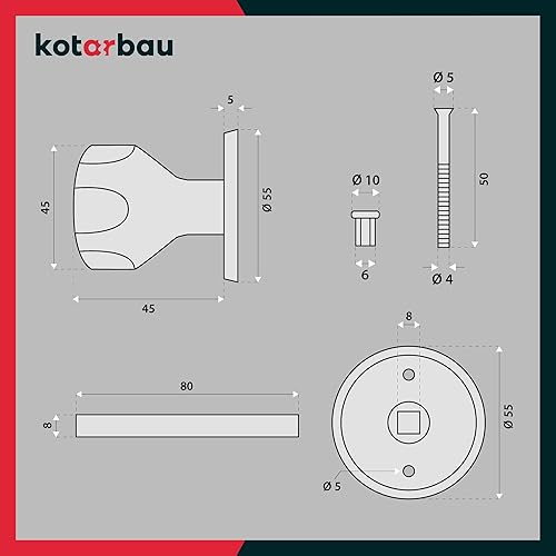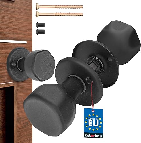 KOTARBAU® Türknauf Drehbar Schwarz Türgarnitur Türbeschlag Türgriff mit Montageschrauben Stahl Lackiert Kugelknauf Türknopf Drehknauf Schutzbeschlag