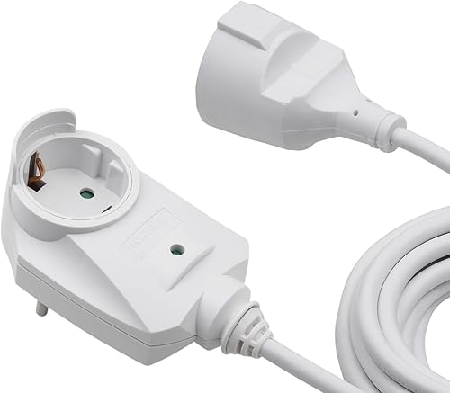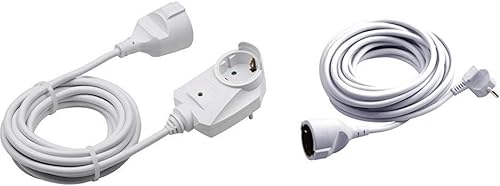 Meister Schutzkontakt-Verlängerung mit Zusatzstecker - 5 m Kabel - weiß - IP20 Innenbereich / Powersplit / Verlängerungskabel mit Überspannungsschutz / Schuko-Verlängerung / 7430670