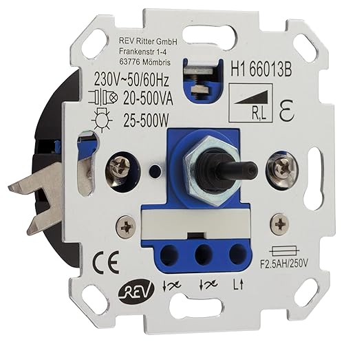 REV Technik Dimmer - Helligkeitsregler 25-500W, 230VAC, Trafol.: 20-500VA, silbern