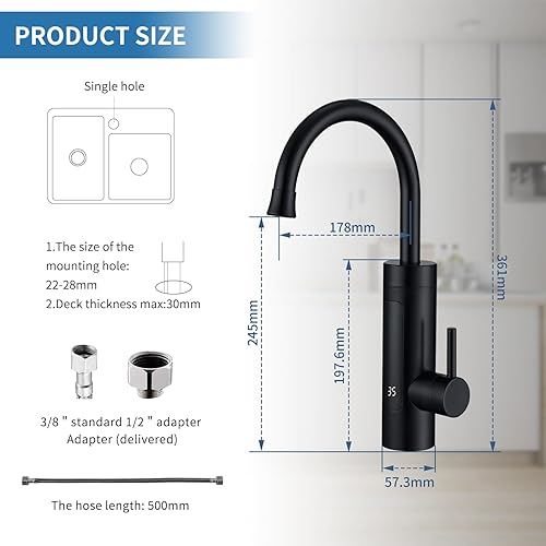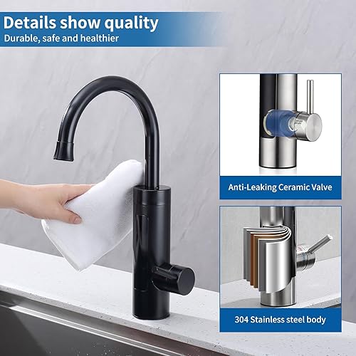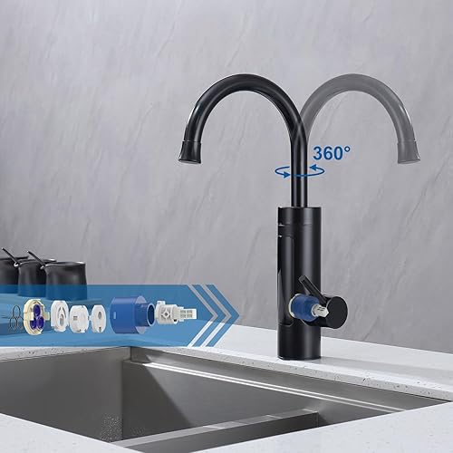 Elektrischer Wasserhahn mit Durchlauferhitzer 230V,Wasserhahn Küche Durchlauferhitzer Küche LED Elektrischer Wasserhahn Edelstahl,360° Swivel Warmwasserboiler Küchenarmatur Camping Wasserhahn