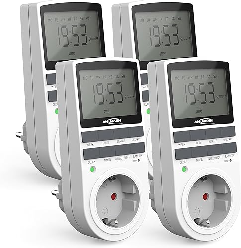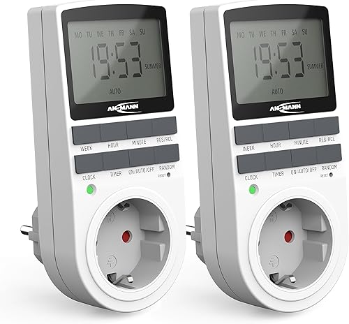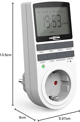 ANSMANN Zeitschaltuhr, Steckdose, digital mit 10 Schaltzeiten, LCD-Display, Zufallsfunktion, Sommerzeitschaltung, 3680W, Wochenzeitschaltuhr, weiß