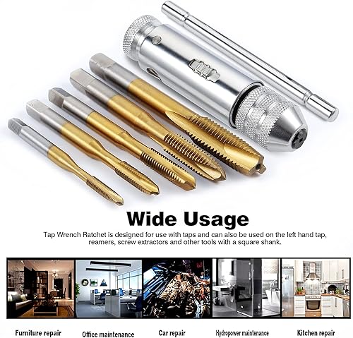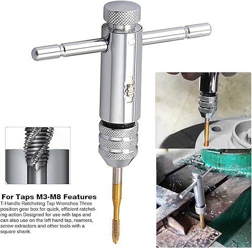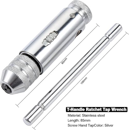 Gueenky Gewindeschneider Set Verstellbarer, Gewindeschneider M3 M4 M5 M6 M8, T Griff Windeisen Ratsche, Gewindeschneider Handgewindebohrer, HSS Gewindebohrer Set mit Werkzeughalter mit Ratsche