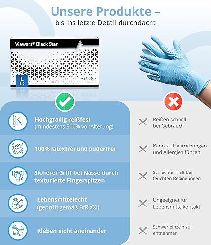 Viawant® Nitrile Pro Einweghandschuhe Nitrilhandschuhe XS [100 Stück] Stabil, Hypoallergen, Puderfrei & Latexfrei – Reißfeste Einmalhandschuhe – Blau