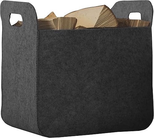 Rubberneck Filzkorb Aufbewahrungskorb mit Griffen, Eckig, Maße 25 x 35 x 35 cm, Grau