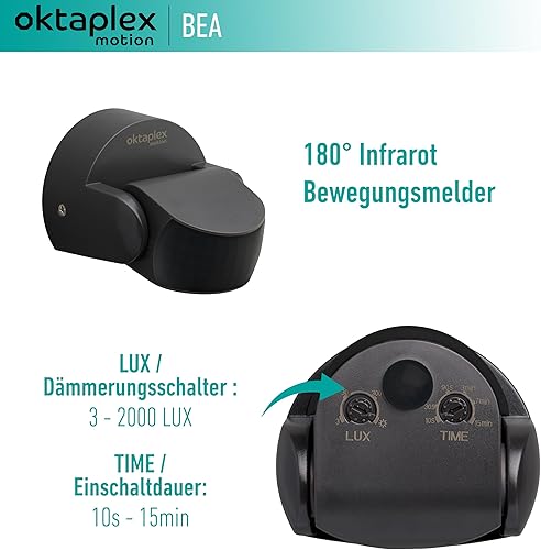 Oktaplex Bea Bewegungsmelder Aussen IP65 schwenkbar 180° Infrarotsensor 10m Reichweite 230V anthrazit mit Dämmerungssensor
