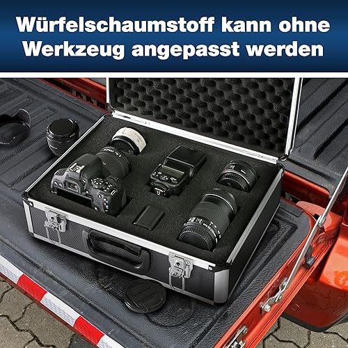 PeakTech P 7305 7305 – Universal Koffer für Messgeräte, Robuster Tragekoffer, Werkzeug Aufbewahrung, Würfelschaum Platten, Schaumstoff Polsterung, abschließbar, Staubschutz, L - 405 x 330 x 150 mm