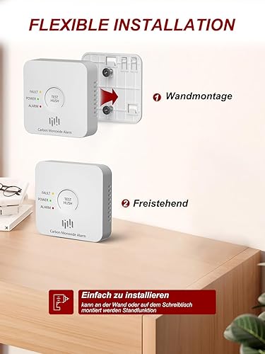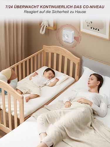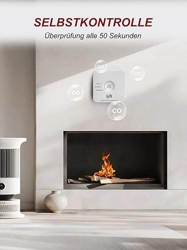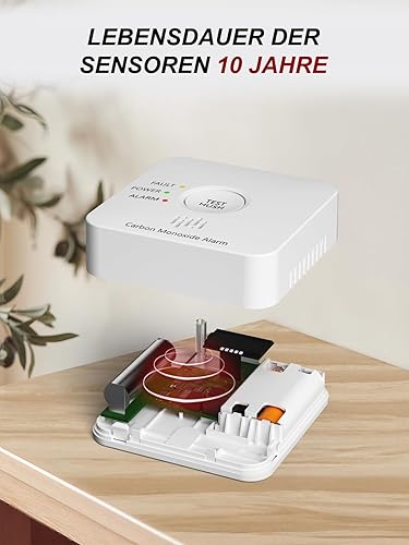 Kohlenmonoxid Melder, 10-Jahres-Batterie CO melder mit LCD-Display und Silent-Test-Taste, EN50291 konform, Kohlenmonoxid-Warner (TCS310A-H)