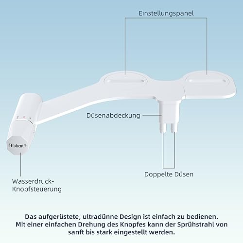 Hibbent Bidet Aufsatz mit Süßwasser – Slim Nicht Elektrisch Bidet Einsatz Für Toilette mit,Doppel Düsen Bidet Toilettenaufsatz,Spart Papier,Einfache Kontrolle WC-Aufsatz,Po-Dusche,Weiß
