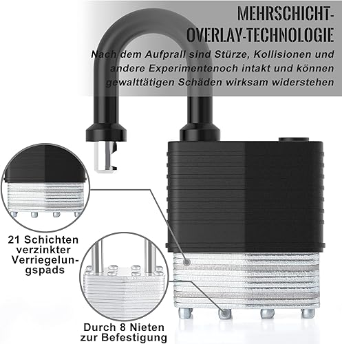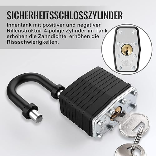 Diyife 2 Stück Messing-Vorhängeschloss mit Wasserdichtes Kunststoffmantel, Aussen Wetterfestes Hangschloss, 4 Schlüssel, Vorhängeschloss für Gym Locker/Schule/Garage/Zaun/Schuppen