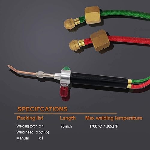 Mini Gasbrenner Löten, Mikro Sauerstoffbrenner Kit Acetylen-Schweißbrenner mit 5 Spitzen, Hochtemperatur Schweißgasbrenner Löten passend für Schläuche, Schmuckreparatur, Bastler, Handwerk