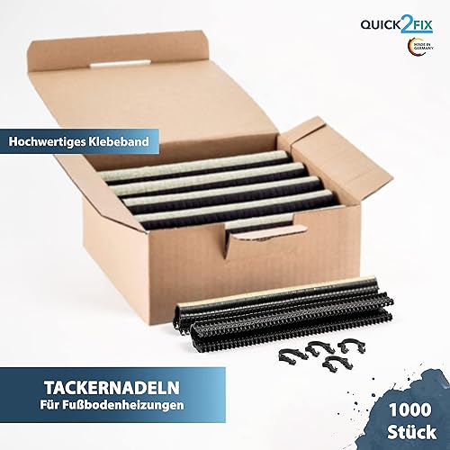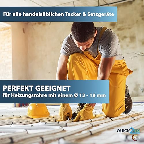 QUICK2FIX® 1000 Stück Tackernadeln für Fußbodenheizung/Fußbodenheizungsrohr - Profi-Tackernadeln - Heizrohrhalter - Fußbodenheizung Rohrhalter - Made in Germany
