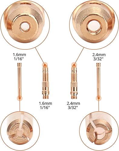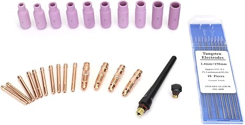 QWORK WIG Schweißbrenner Verbrauchsmaterial Zubehör, 36 Stk WIG Gaslinse WIG Gasdüsen WIG Zurück Cup Wolfram Elektroede Kit für WP-17 18 26 WIG-Schweißbrenner