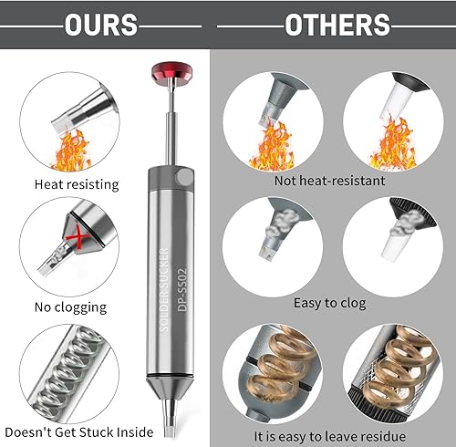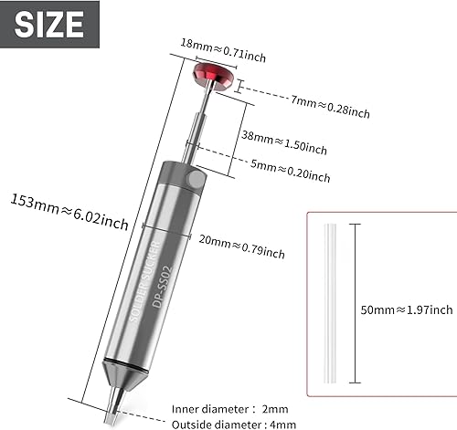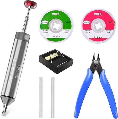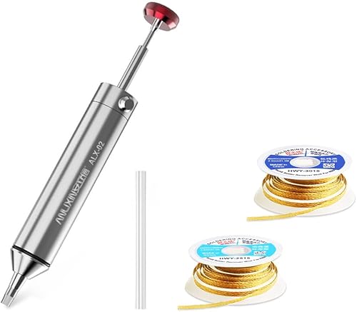 Owootecc Entlötpumpe, kein Verstopfen, Entlötpumpe aus Aluminiumlegierung, Entlötwerkzeug mit 1 Silikondüse, 2 Lötdochtgeflechtenstärkere Saugkraft für die Lötentfernung