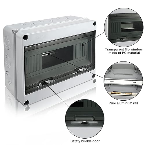 Royouzi Verteilerkasten Aufputz, IP65 Sicherungskasten Aufputz, 1-Reihig für 12-MODULE Aufputzverteiler, Unterverteilung Aufputz mit Messingklemmen für Garten oder Außenbereichen, Villen, Ladesäulen