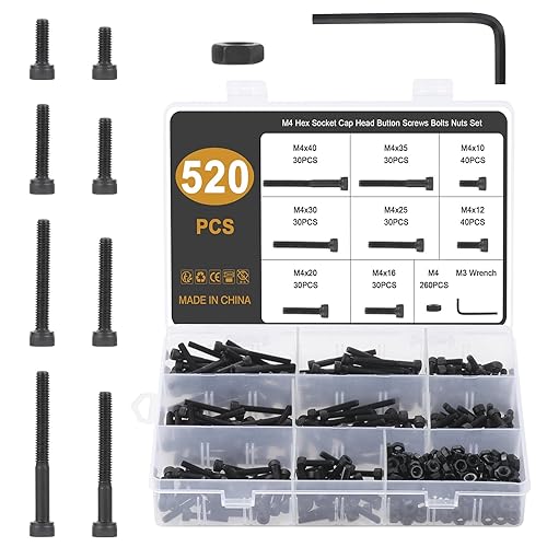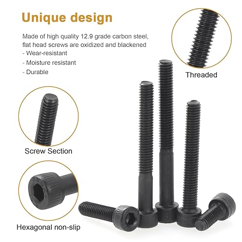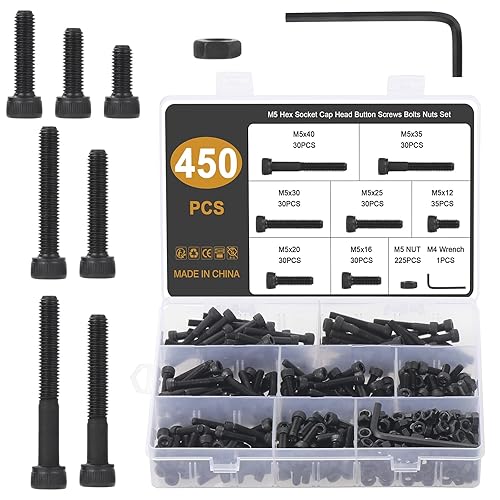Gueenky 450 Stück Innensechskant Schrauben Kohlenstoffstahl, M5 x 12/16/20/25/30/35/40mm Zylinderschrauben mit Innensechskant Maschinenschrauben Schwarz Schrauben mit Muttern und Sechskantschlüssel