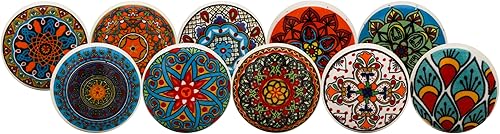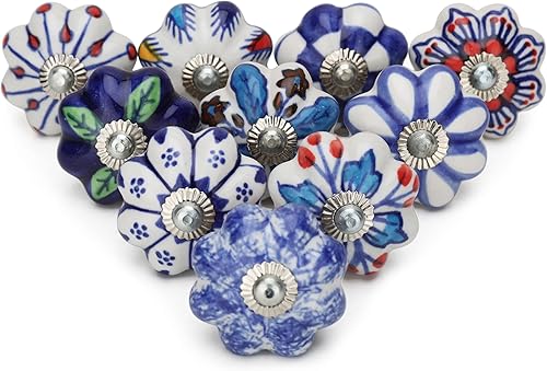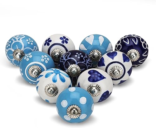 Craft Trade Sortiert Blau Türschrankknopf Boho Antik Keramik-Türknöpfe Kommode Schublade Zieht Hardware Knöpfe fur Küche Möbel Messing und Schrank - 10 Stück
