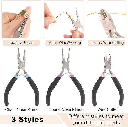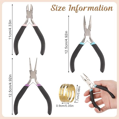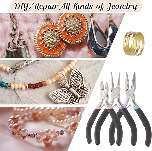 Schmuckzange, 3 Stück Schmuck Zangen Set, Spitzzange, Rundzange, Drahtschneider, Kleine Zange mit Sprungringöffner für Schmuckherstellung, Schmuckreparatur Bastelzange