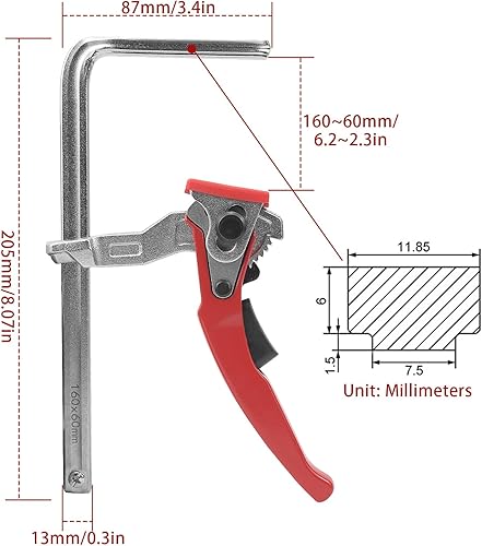 BIGP 2 Stück Zwinge, Ganzstahl-Tischzwinge mit Hebelgriff, Hebelzwinge, Schnellspanner mit 160mm Kapazität und 60mm Kehlentiefe zum Schleifen, Schneiden