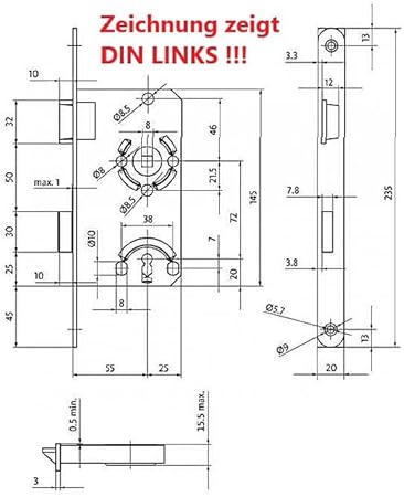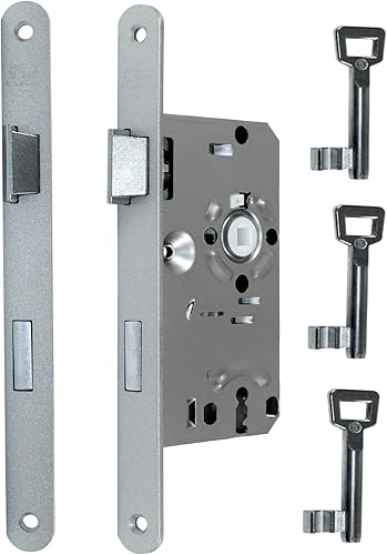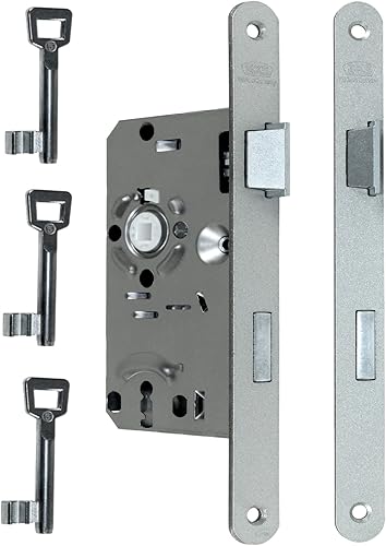 BKS Standard Zimmertürschloss/Türschloss mit Metall Falle und Riegel mit 3x Buntbart Schlüssel, 55/72/8, Stulp: 20 x 235mm abgerundet, DIN Links incl. SN-TEC® Montageset (LINKS)