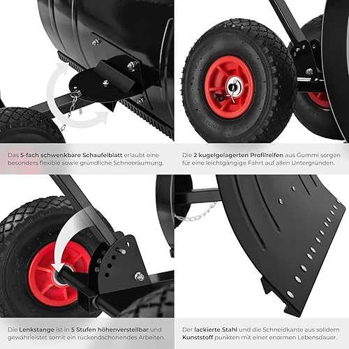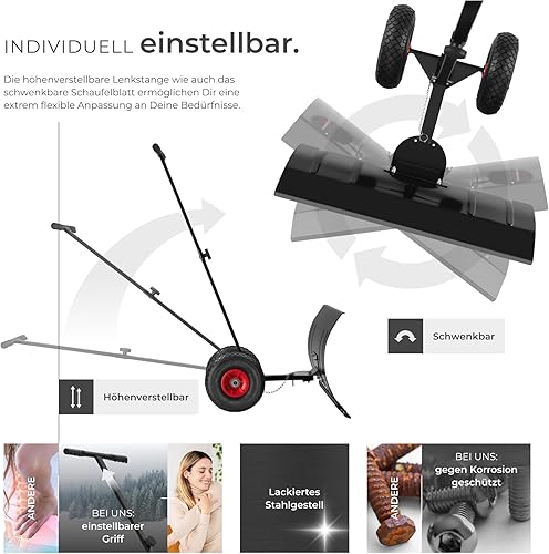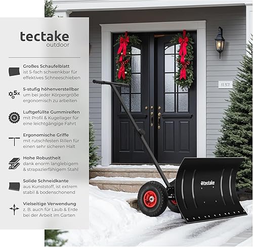 tectake® Schneeschaufel, Laubsammler aus Metall, auf Rädern, Schneeschieber, Schneeräumer, Outdoor schneefrei, Winterdienst, Schneeschippe, Schneehexe, Schneepflug, Lawinenschaufel