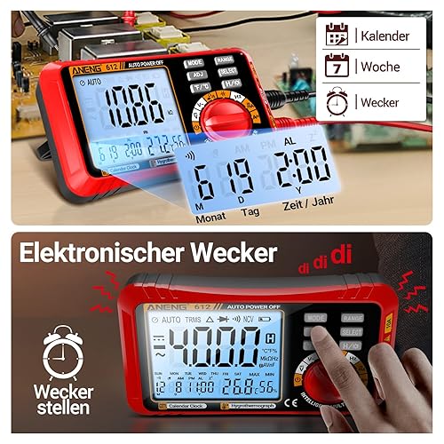 ANENG Multimeter,4000 Zählungen,TRMS Mit Automatischer Bereichswahl,Großes LCD,Misst AC/DC,NCV,Spannung,Widerstand,Diode,Kontinuität,Kapazität,Temperatur(Rot)