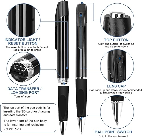 FINSUI Mini Kamera 32GB 1080P überwachung Kamera Tragbare kleine Überwachungskamera Stiftkamera Kamera für Home Office Geschäftstreffen mit 5 Tinte Fills