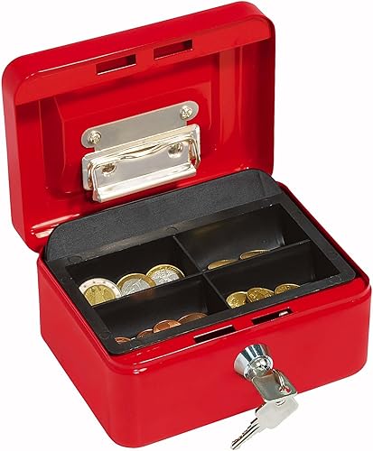 Wedo 145121H Geldkassette (aus pulverbeschichtetem Stahl, versenkbarer Griff, Geldnoten- und Belegeklammer, 4 -Fächer-Münzeinsatz, Sicherheits-Zylinderschloss, 15,2 x 11,5 x 8,0 cm) schwarz