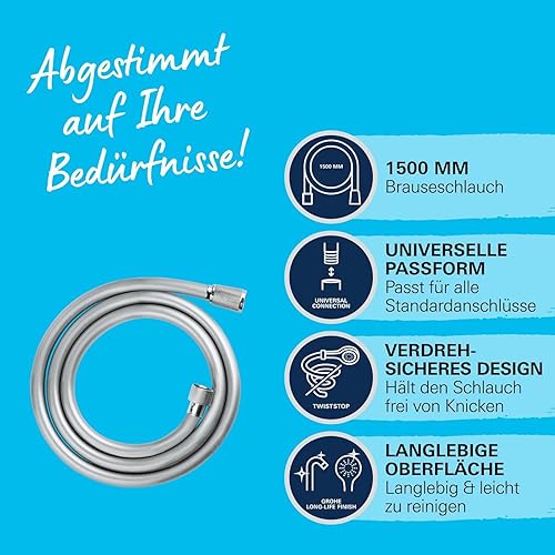 GROHE Vitalioflex Comfort, Duschschlauch (1750 mm, druckbeständig, knickfest, universaler Anschluss), chrom, 28745002
