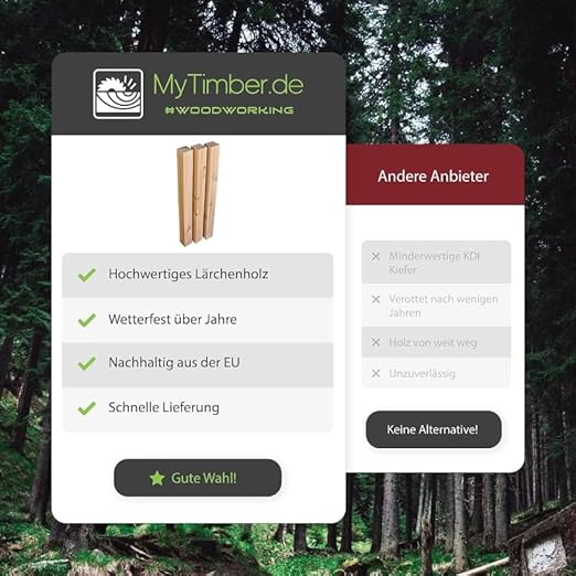 MyTimber Holzpfosten Lärche 70x70 mm | 80cm 100cm 150cm 200cm | Pfosten für DIY Zaun als Zaunpfosten oder für deinen Bau als Kantholz, Holzbalken Zaunpfahl (200cm)