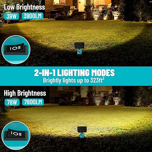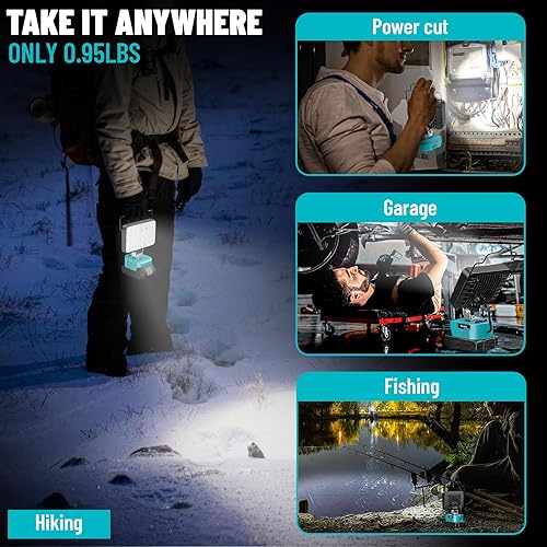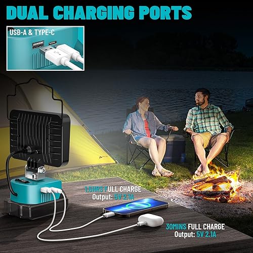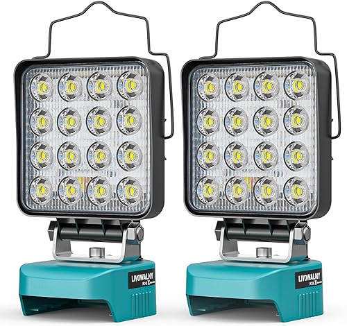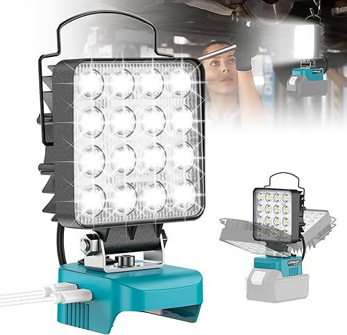 Led Lampe Akku Für Makita 18V, LIVOWALNY 48W Akku Lampe Led Baustrahler Doppelschalter mit Typ C/USB-Arbeitsleuchte für Garage, Camping, Baustelle (ohne Akku)