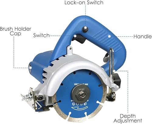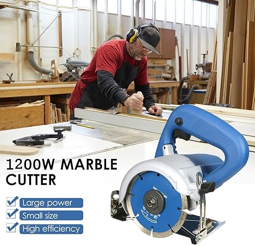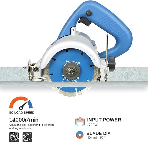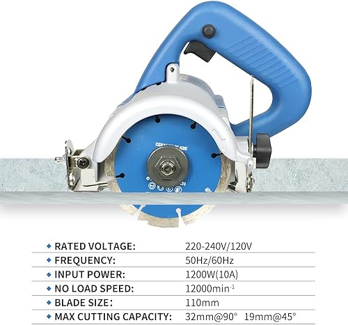 Trocken Steintrennsäge Hancaner 1200 W Fliesensäge, incl.Ø105mm Hochfeste-Trennscheibe, 12000 U/min & 0-45 Grad Fasenschnitt, von Marmor, Fliese, Keramik, Holz, PVC