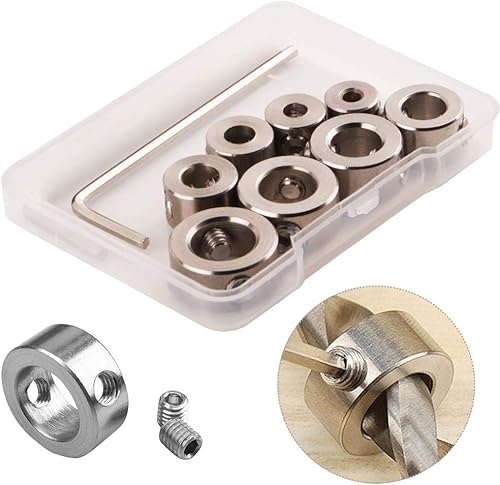 CESFONJER 8 tlg Tiefenanschlagringe Set Stellungsregler Ring Positionierer HSS-Locator Tiefenbegrenzer Tiefenstop Dübeln 3-10mm