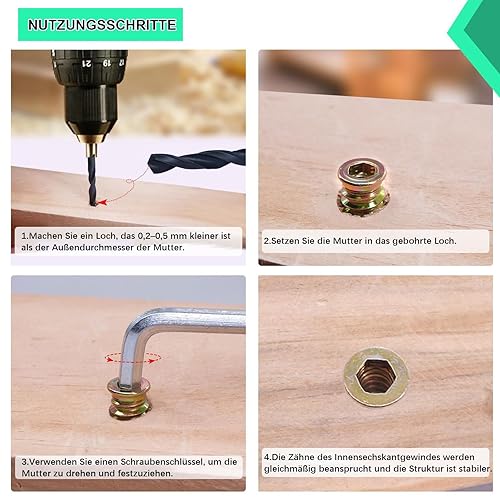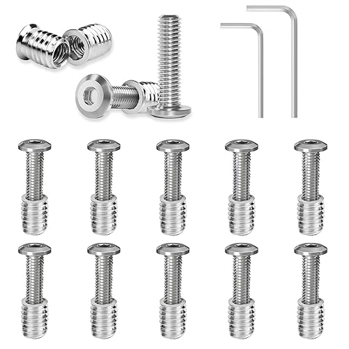 10 Stück M6 x 20 Schrauben, Flachkopfschrauben und Einschraubmutter Sortiment Kit, Gewindeeinsatz Holz, Einschraubgewinde Muttern für Holzmöbel