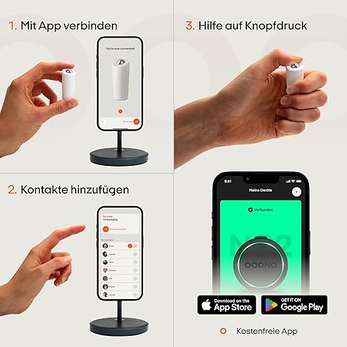 OOONO SIRÈNE - Intelligenter Taschenalarm [MIT APP LIVE-STANDORT] - Persönlicher Alarm für Frauen, Männer & Kinder - Durch Knopfdruck Kontakte im Notfall alarmieren - Sicherheit & Hilfe für Unterwegs
