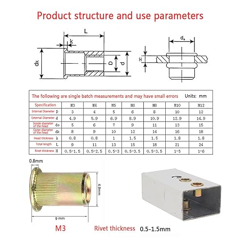 192 Stück Nietmuttern Set,Gewindenieten,Blindnietmuttern,Verzinkter Karbonstahl, Einnietmuttern Sortiment für Metall, Holz, Aluminium(M3/M4/M5/M6/M8/M10/M12)